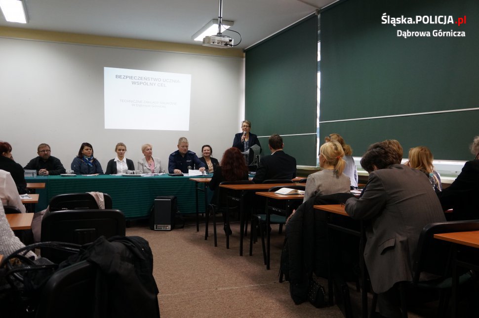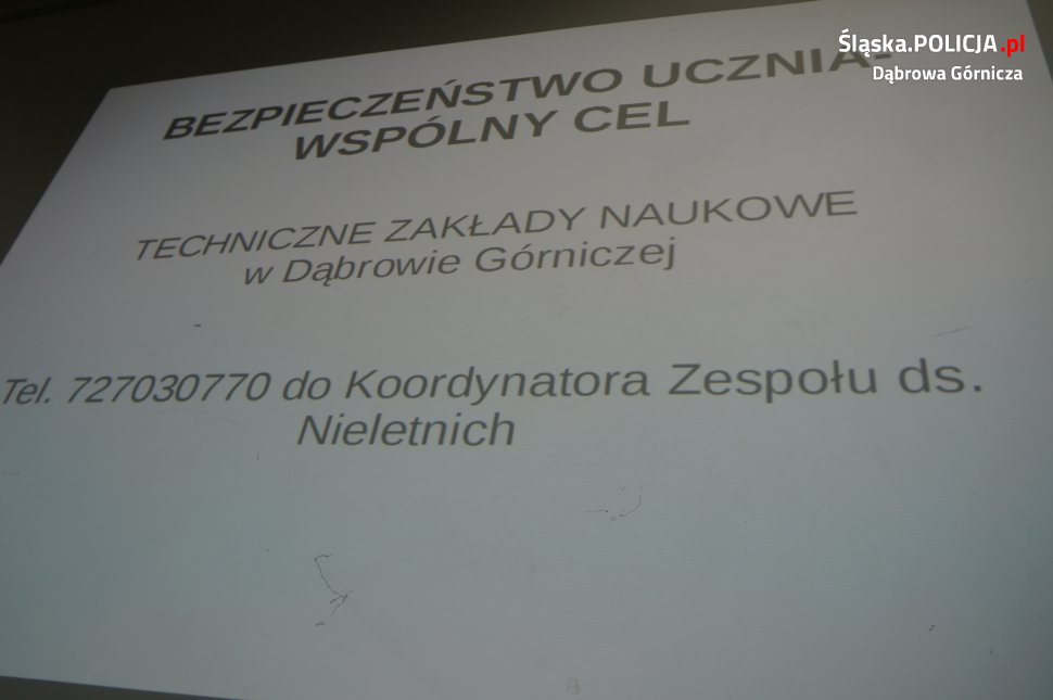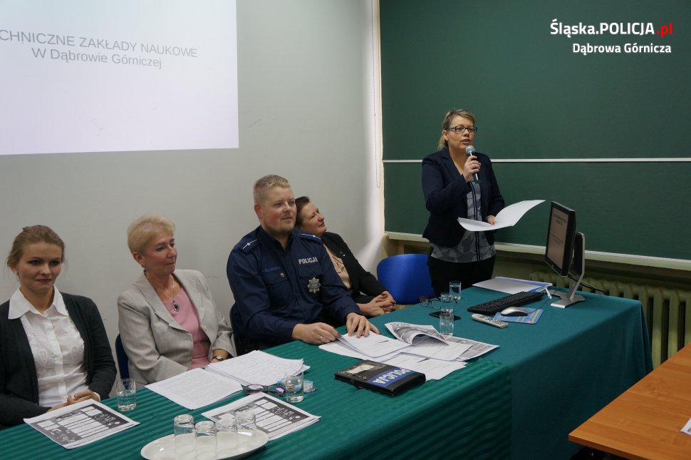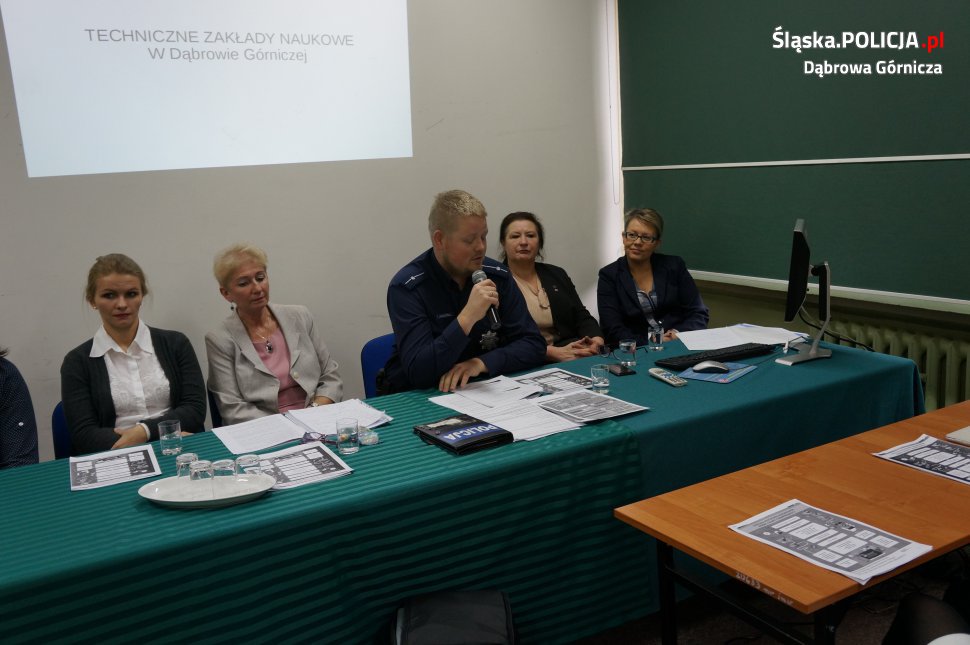 Pod tym tytułem w gmachu Technicznych Zakładów Naukowych w Dąbrowie Górniczej odbyła się miejska konferencja z udziałem dyrektorów wszystkich dąbrowskich placówek oświatowych oraz przedstawicieli Prokuratury, Sądu, Kuratorium i Policji. W trakcie konferencji policjanci zachęcali także do korzystania z aplikacji "Moja Komenda" oraz interaktywnego narzędzia "Krajowa Mapa Zagrożeń Bezpieczeństwa".