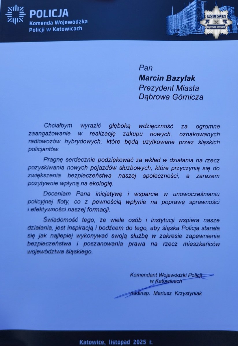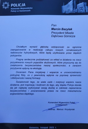 Zakup radiowozu był możliwy dzięki wsparciu finansowemu samorządu miasta Dąbrowa Górnicza oraz Wojewódzkiego Funduszu Ochrony Środowiska i Gospodarki Wodnej.