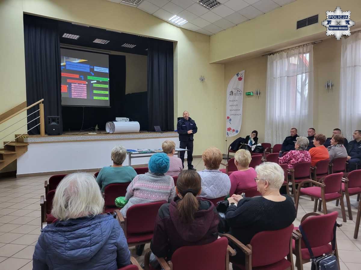 do bezpośredniej rozmowy z seniorami, omówienie lokalnych problemów, wymiany doświadczeń oraz omówienia najczęściej stosowanych metod oszustw, takich jak „na wnuczka”, „na policjanta” czy „na pracownika instytucji”.